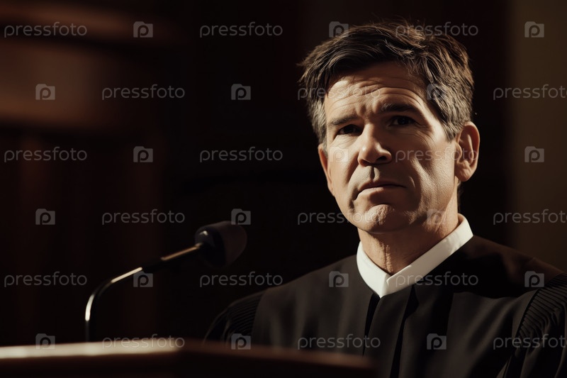 Портрет мужчины среднего возраста, одетого в рубаху судьи, сидящего в зале суда