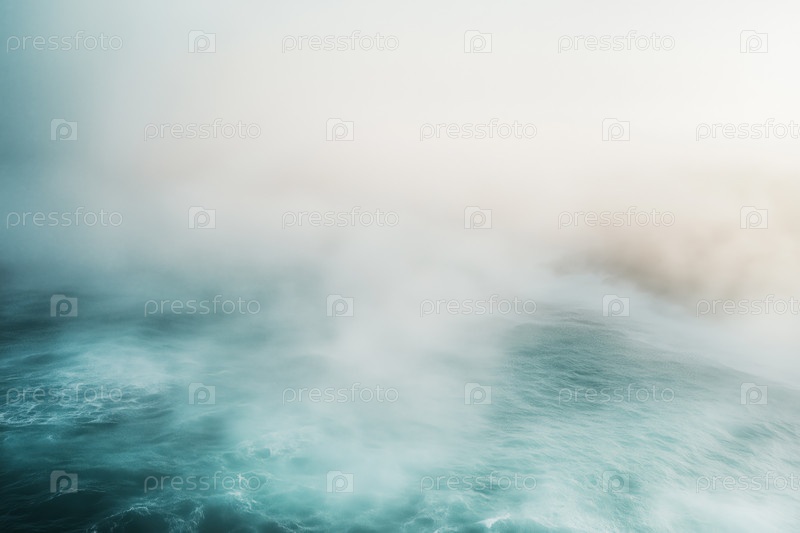 Океанские волны разбиваются под туманным небом, создавая спокойную атмосферную сцену