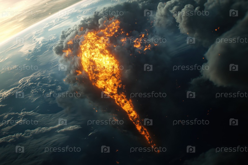 Огненный метеорит входит в атмосферу Земли, создавая драматический дымовой след