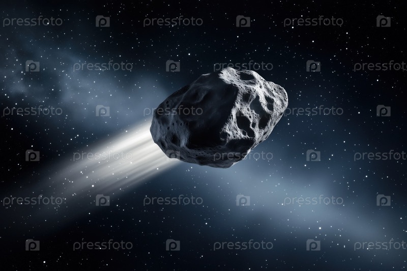 Астероид путешествует по космическому пространству, оставляя за собой яркий след света
