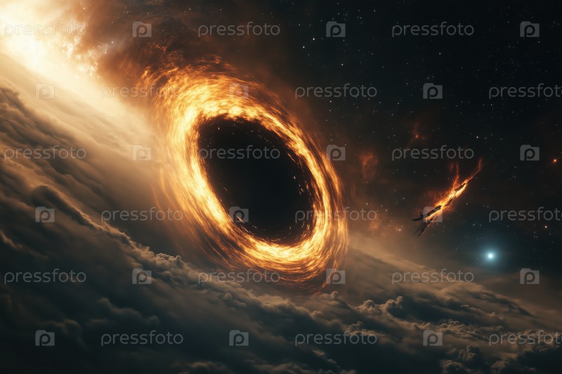 Черные дыры поглощают космический корабль в космосе с помощью светящегося аккреционного диска