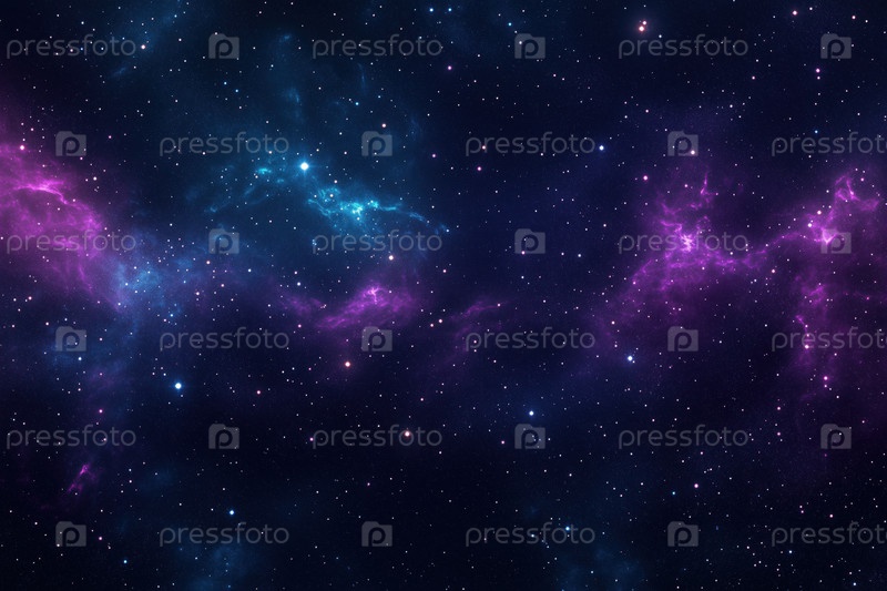 Красочные туманные облака сияют в глубоком космосе с яркими светящимися звездами