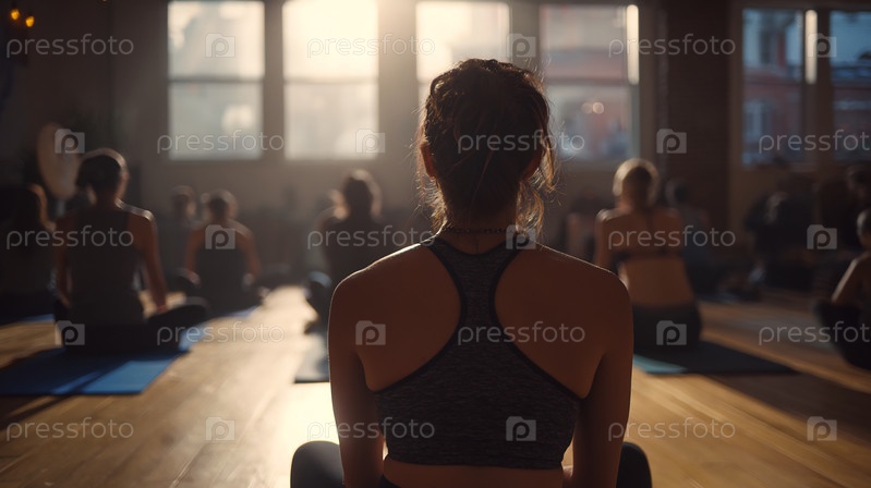Медитирующая женщина в теплой студии йоги