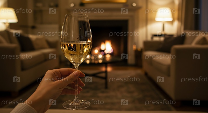 Мужчина, держащий бокал вина в теплой гостиной