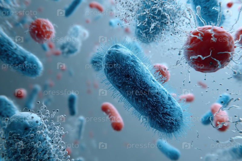 Микроскопический взгляд на бактерии и вирусы, плавающие в жидкой среде