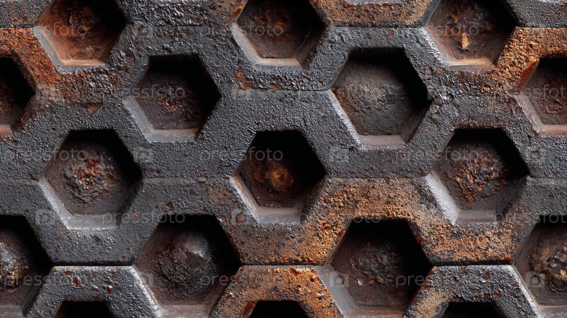 Близкий план темной, грандж и ржавой металлической плиты с шестиугольными узорами. бесшовные плитки