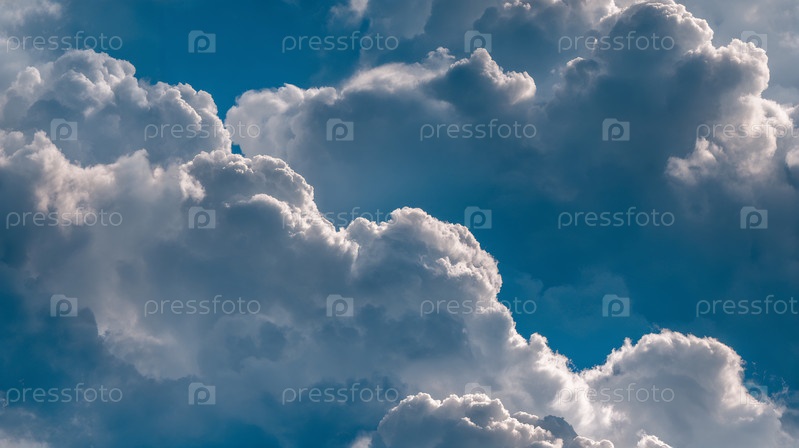 Большие пушистые белые облака, плавающие на ярко-синем небе в солнечный день