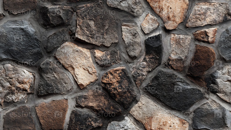 Текстурированная поверхность сильной каменной стены, показывающая различные узоры и цвета камней. бесшовные плитки