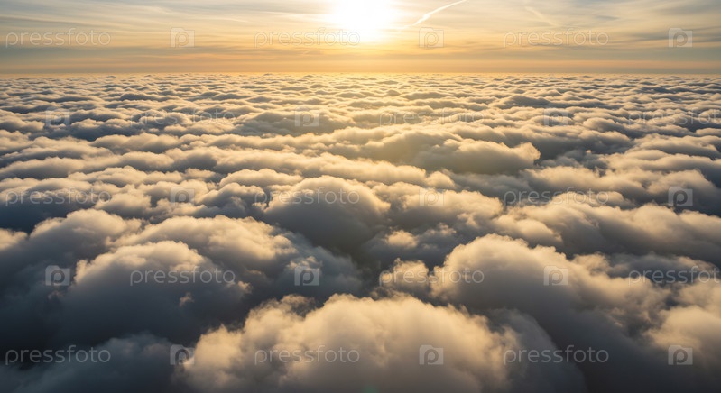 Золотой закат над пушистыми облаками сверху