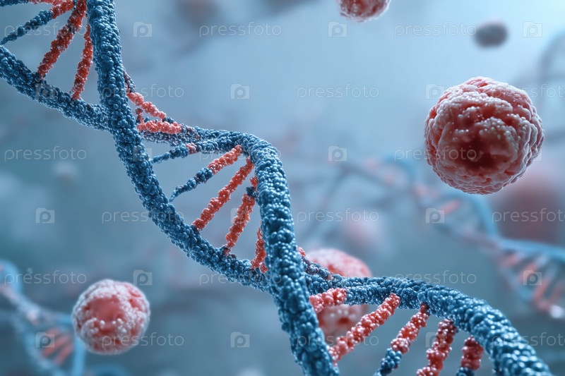 Ближайшее изображение спирали ДНК и клеток, иллюстрирующих генетическую науку и биотехнологии