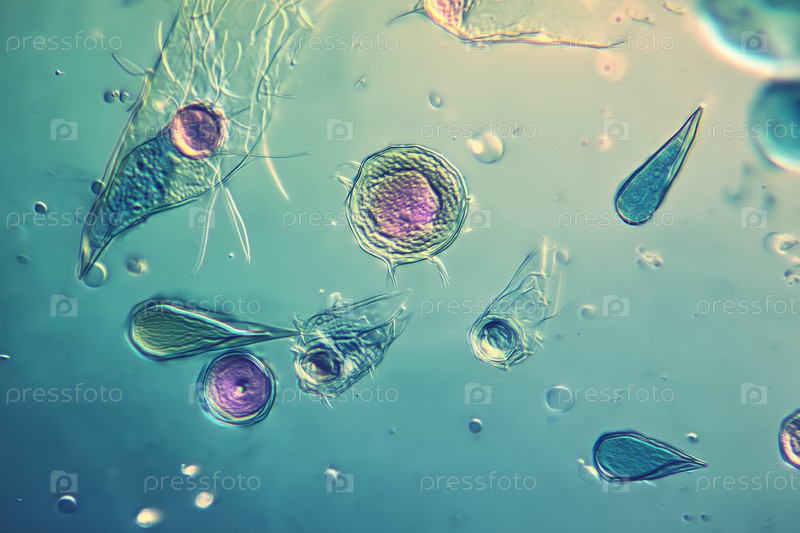 Микроскопические протозои и микроорганизмы, плавающие в жидкой среде