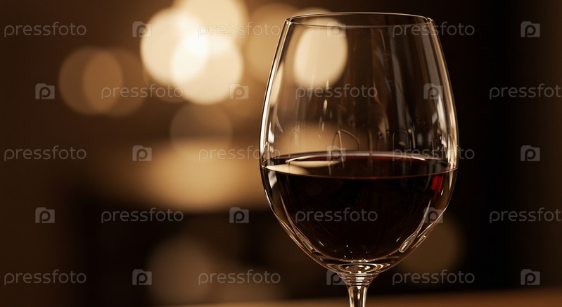 Элегантный стакан красного вина, теплые размытые огни на заднем плане