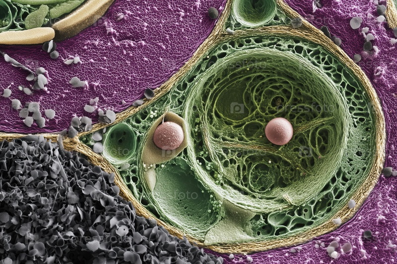 Структура клеток растений показывает органеллы и мембраны под микроскопом