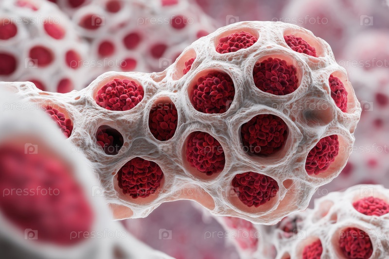 Микроскопический взгляд на человеческие клетки, демонстрирующие биологическую структуру и рост