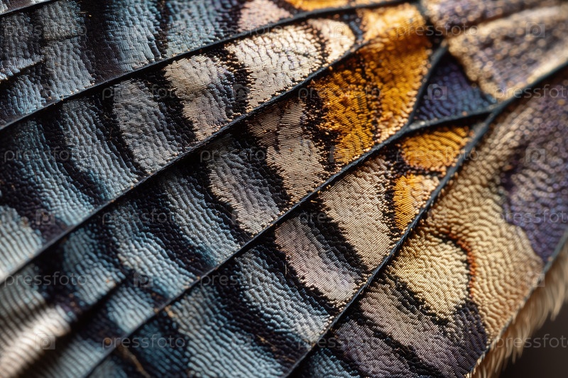 Близкий снимок, показывающий подробную текстуру узора крыла бабочки в естественном свете