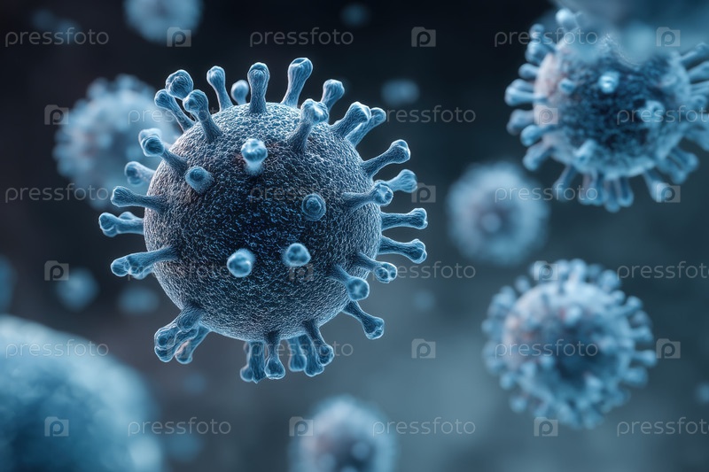 Ближайшее изображение частиц вируса, плавающих в воздухе, показывающее распространение инфекции