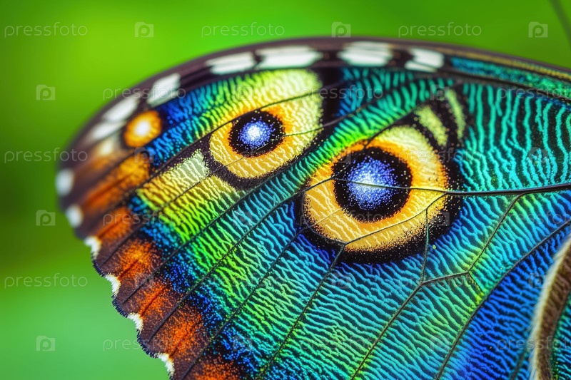 Ближайшее изображение яркого крыла бабочки, показывающее подробные красочные узоры и текстуру