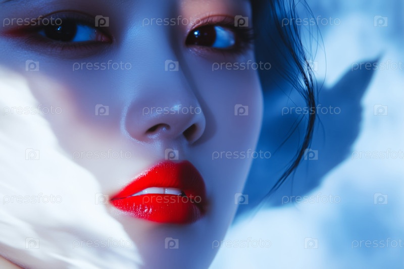 Портрет молодой азиатской женщины, глядящей в камеру с эффектом двойной экспозиции
