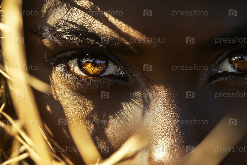 Портрет молодой взрослой чернокожей женщины, пристально глядящей на двойной экспозиционный свет