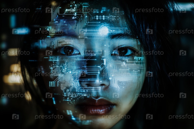 Портрет молодой азиатской женщины, испытывающей двойную экспозицию с перекрытием цепи