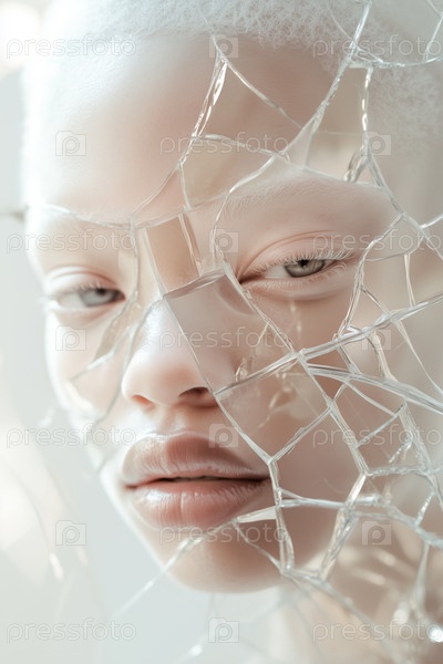 Портрет молодого взрослого андрогинального человека, перекрывающегося с фрагментами разбитого стекла