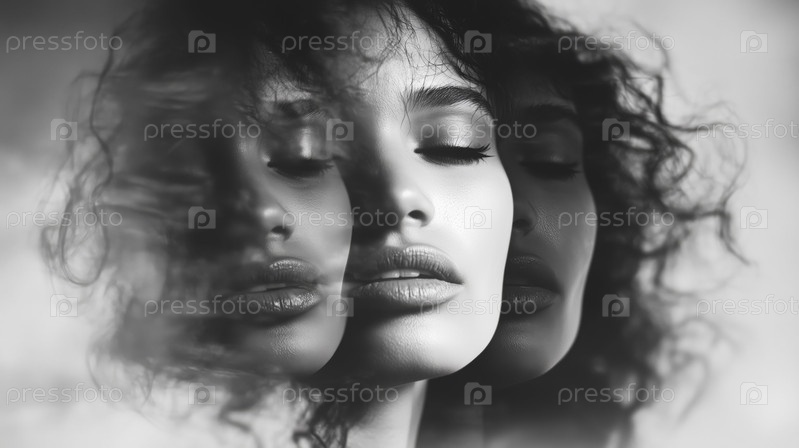 Молодая взрослая чернокожая женщина мечтает с несколькими отражениями в двойной экспозиции