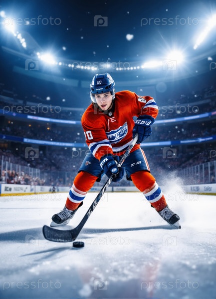 Мальчик-подросток играет в хоккей на льду во время соревновательной игры в помещении