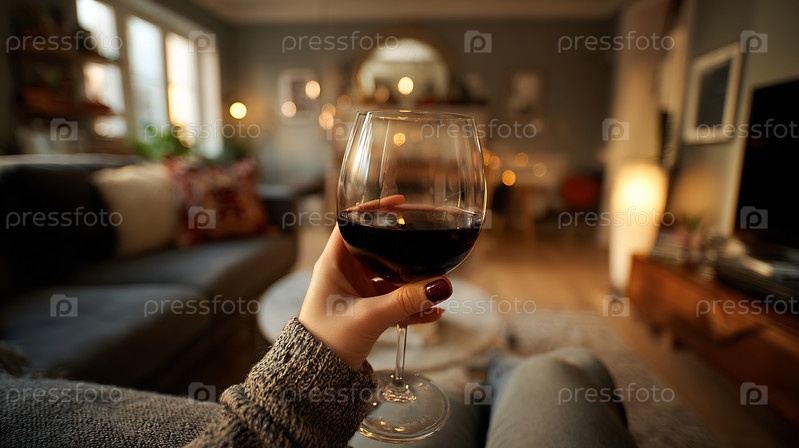 Рука, держащая красное вино в уютном доме