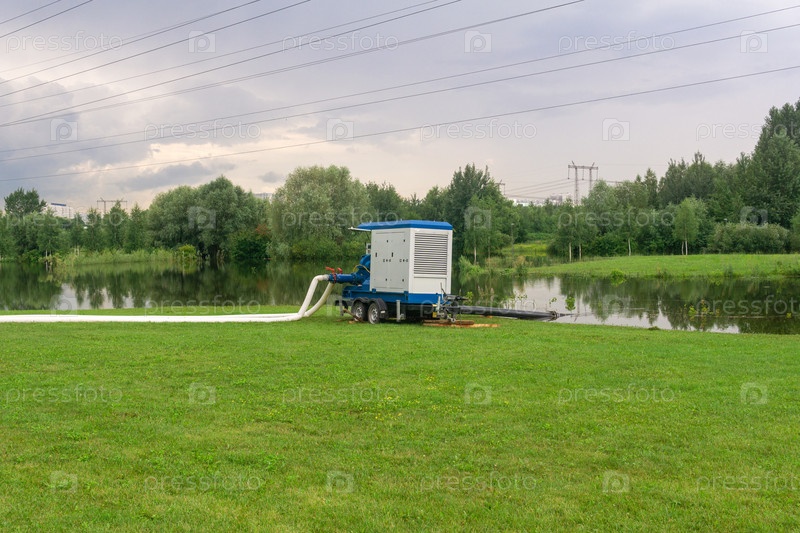 Насос сливает воду из парка, затопленного во время дождей