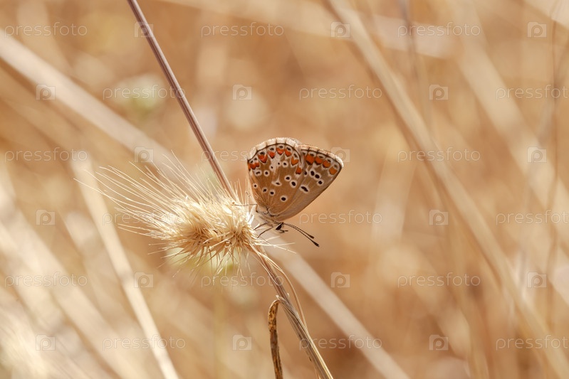 Бабочка (Aricia cramera) сидит с близкого расстояния