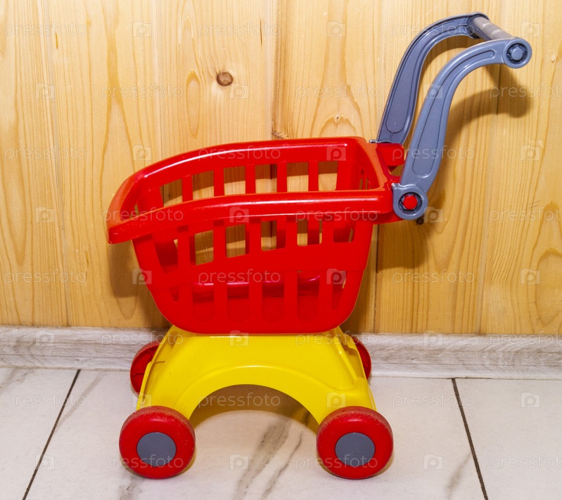 Игрушечная тележка на деревянном фоне