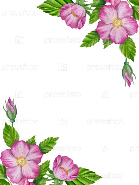 Зеленые свежие чайные листья, чашка чая и чайник для варки, чаепитие с цветками розового бедра и ягодами. Иллюстрация Международного дня чая. Акварель вручную нарисованная изолированными элементами