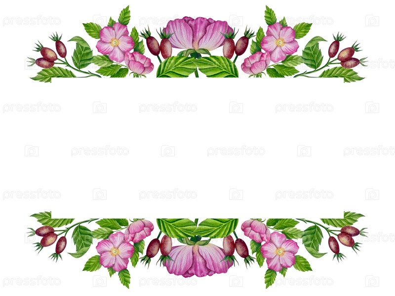 Зеленые свежие чайные листья, чашка чая и чайник для варки, чаепитие с цветками розового бедра и ягодами. Иллюстрация Международного дня чая. Акварель вручную нарисованная изолированными элементами