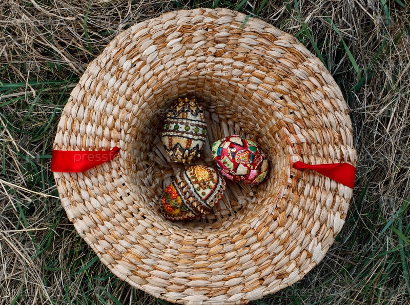 Пасхальные яйца в соломенной шляпе