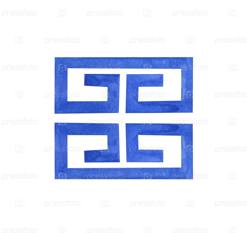 Акварельная иллюстрация синего геометрического орнамента на белом фоне. Стилизованные элементы греческого рисунка, нарисованные вручную. клипарт