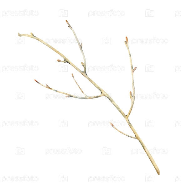 Акварельная иллюстрация ветви дерева без листьев. Ботанический рисунок изолирован на белом фоне. Для целей дизайна и иллюстрации. клипарт