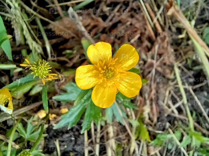 Ярко-желтый дикий цветок бабочки выделяется в пышной зеленой среде.Цветок имеет несколько лепестков и группу штаммов, символизирующих красоту природы