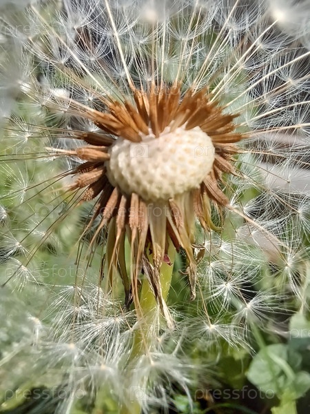 Вид сверху на голову семени одуванчика, раскрывающую сложные детали дизайна природы