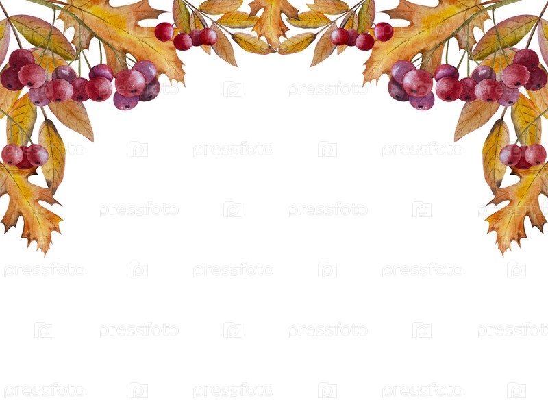 Ручно нарисованный акварельный осенний набор тыквен, желудей, осенних листьев, грибов, ягод, изолированных на белом фоне. Идеально подходит для создания карт и дизайна. Иллюстрации Дня благодарения