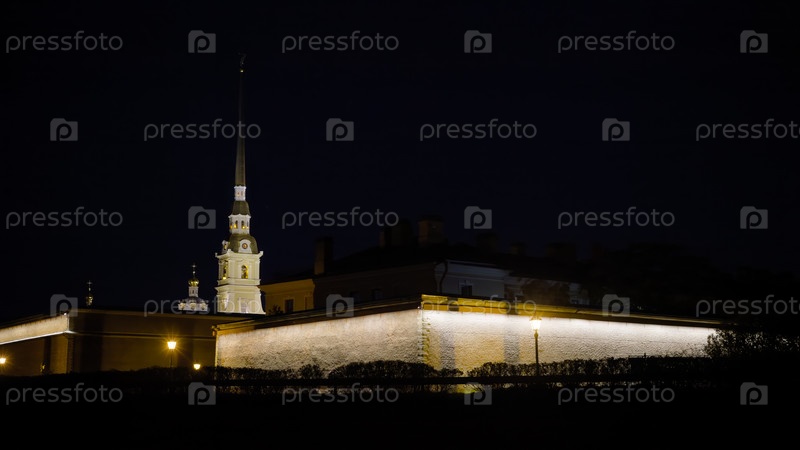 Санкт-Петербург, Россия. вид на крепость Петра и Павла из вод пролива Кронверк. ночная прогулка по воде в Петербурге