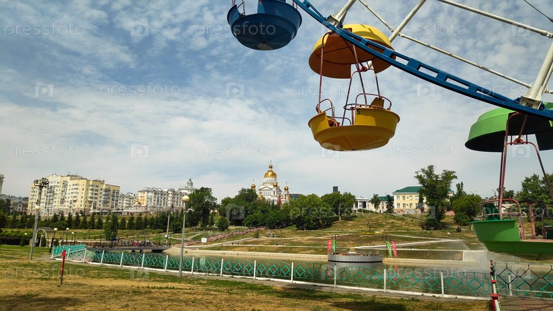Саранск, Россия. собор святого праведного воина Федора Ушакова. ферикс тяга колеса. парк культуры и отдыха А.С. Пушкина. Республика Мордовия