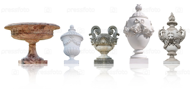 Древняя декоративная мраморная ваза изолирована на белом фоне
