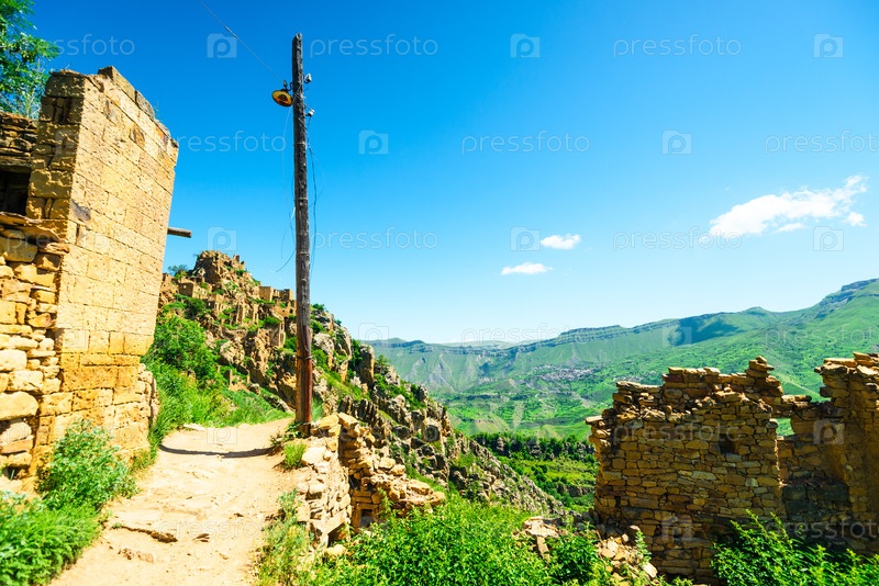 Улица заброшенной горной деревни-призрак Гамсутла.Северный Кавказ
