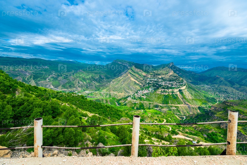 Горный пейзаж деревни Гуниб взят с горной дороги.Дагестан