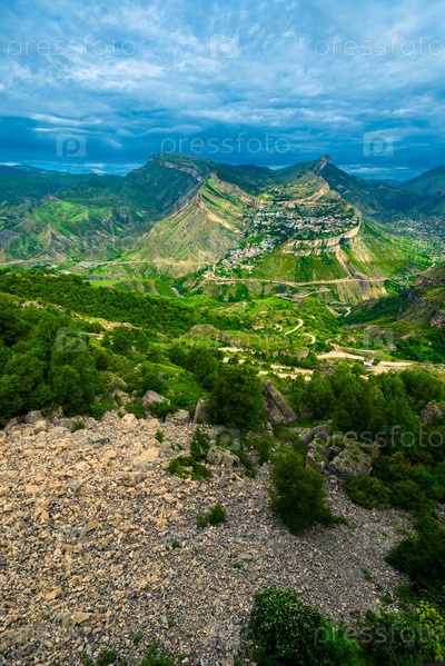 Горный пейзаж живописной горной деревни Гуниб.Дагестан