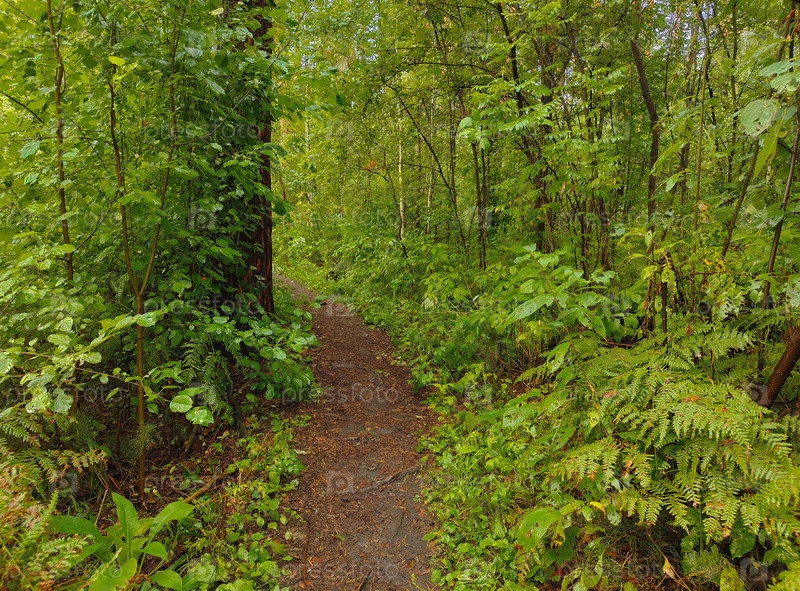 Тропа в утреннем лесу после дождя