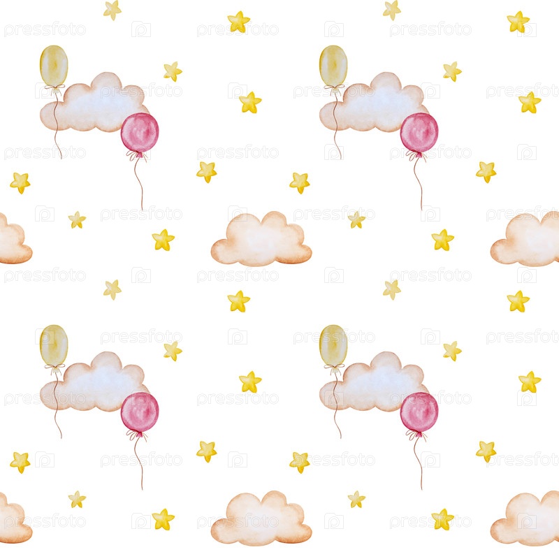 Иллюстрации акварели для детского душа с плюшевым медведем и воздушными шарами для детских поздравительных открыток, приглашений на день рождения детей, веб-сайта и упаковки