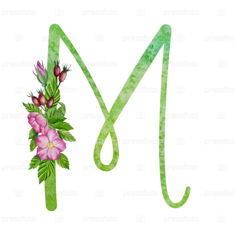 Алфавит, цветочный набор букв с акварельной живописью цветов с розами и листьями.Изолированные инициалы монограмм идеально подходят для свадебных приглашений, поздравительных открыток, логотипов, плакатов и других.Дизайн праздников