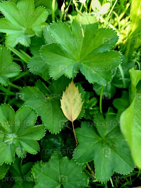 Близкий взгляд на пышные зеленые листья в естественной обстановке днем, показывая яркие зелени и сложные узоры листьев