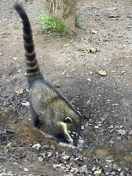 Курт пьет воду из лужи в Национальном парке Игуасу, Аргентина